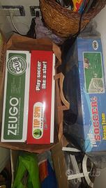 tanto materiale possibilità di lotto unico o vendita sfusa. campo Subbuteo lab nuovo, zeugo/total soccer/top spin nuovi, 1 altro zeugo nuovo no scatola, 1 astroturf pegasus 70x70 flock, diverse squadre, abbellimenti per campo, panchine, altre reti pali tondi, palle standard e piccole....di tutto