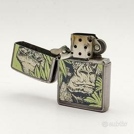 Accendino vintage Zippo primi anni 90, "ENDANGERED ANIMALS" The Barrett-Smythe Collection. Con pietrina.