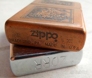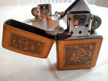ZIPPO molto raro, non è una replica, originale! Edizione limitata con raffigurati Don Chisciotte, Sancho Panza e i mulini. Contiene ORO nella lega, non so in che quantità, all'epoca (circa fine anni 90), così era indicato. Sembra fatto di pagliuzze. Senza scatola e confezione purtroppo, comunque componenti tutti originali all'interno, mai sostituiti; come da foto, visto e piaciuto. L'accendino è stato usato. IN OMAGGIO altro simile Zippo, nuovo. Astenersi ribassisti, indecisi e perditempo. Non rispondo a domande; visto e piaciuto. Grazie.