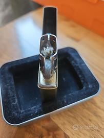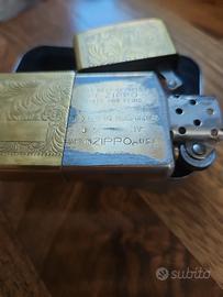 Vendo Zippo originale Venetian in ottone, anno 1988, con confezione/scatolina. Punzonatura fondo J / IV, interno anch’esso coerente con il periodo. Accendino usato, con normali segni del tempo visibili in foto, ma in buone condizioni generali. Modello classico e molto bello da collezione, con decorazione floreale incisa e targhetta liscia frontale. Vendita come da foto.