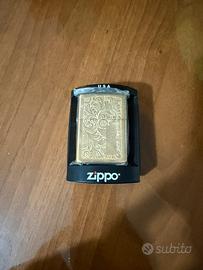 accendino Zippo modello "Venetian" in ottone (Brass), caratterizzato da una complessa incisione floreale