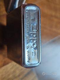 Vendo Zippo originale commemorativo 50 Years and Glowing Stronger 1932-1982. Accendino usato con segni del tempo e graffi visibili, come da foto. Marchiatura sul fondo: A VIII. Interno presente. Ideale per collezione o utilizzo. Condizioni reali quelle mostrate nelle fotografie. Vendo come visto e piaciuto.