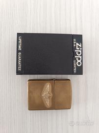 Bellissimo accendino Zippo Navy Wing Bradford PA MADE IN USA di color oro con emblema dorato con incluso il proprio espositore e foglietto.