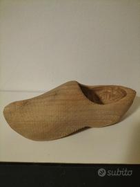 Zoccolo Sabot Olandese in Legno Intarsiato A Mano. Misura circa cm 23. Ideale come portaoggetti. In legno grezzo da decorare o mantenere naturale.
