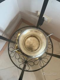 Elegante zuccheriera in argento 800 finemente lavorata con decori sul coperchio e manici cesellati. Un oggetto raffinato e senza tempo, perfetto sia come elemento da collezione che come pezzo d’arredo ricercato. Peso: circa 129 g Manici laterali finemente lavorati Coperchio con incisioni decorative a motivo floreale Marchio inciso sul fondo L’oggetto presenta una naturale patina dovuta al tempo e piccoli segni di ossidazione, che ne testimoniano l’autenticità e il fascino vintage. 📦 Spedizione sicura e tracciata o ritiro a mano su Milano.