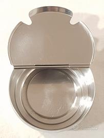 Motta zuccheriera come erano quelle da bar e albergo una volta. Bellissima, usata con cura senza danni, minimi segni d'uso e del tempo. Fori per due cucchiaini. Acciaio inox 18/10, made in Italy. Diametro: 14,5 cm Altezza: 7,5 cm Peso: 440 gr Le immagini sono parte integrante della descrizione. Per dubbi, perplessità o informazioni, sono a disposizione. Oltre a questo ho altri particolari oggetti Vintage che potete trovare nel mio profilo, nel caso sarebbe utile per risparmiare sulle spese di spedizione. Prezzo non trattabile. Se vedete l'annuncio l'oggetto è disponibile. Visibile a Bergamo, consegno a mano in zona Valbrembo o Fontana, spedizione per Italia effettuata tramite pacco "Poste delivery Standard", tracciabile online + 8 euro. Spedisco solitamente entro 2 giorni lavorativi, dalla ricezione del pagamento.
