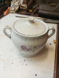 Zuccheriera grandi dimensioni epoca prima guerra mondiale 15 18 munita di coperchio. Motivi floreali