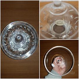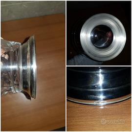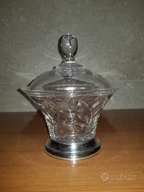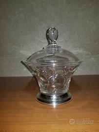 Buongiorno, metto in vendita questa zuccheriera in cristallo con base in lastra d' argento 925 e coperchio.