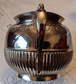 Splendida Zuccheriera Inglese in Sheffield primi ‘900 in argento 800 con certificato di garanzia. Dimensioni 17 x 10 cm ca. In ottime condizioni.