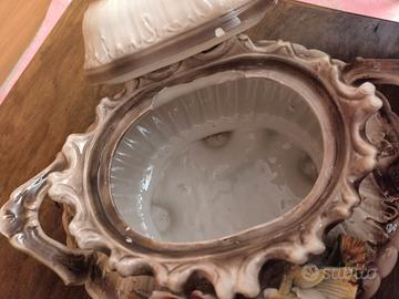 Vendo sfarzosa zuppiera in porcellana di Capodimonte originale in buone condizioni. Presenta 2 difetti poco visibili uno all'interno bordo alto e uno sul coperchio. Prezzo trattabile