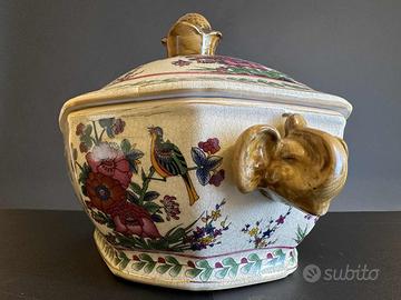 Zuppiera in ceramica decorata a mano anni 90 come nuova, esposta in una vetrinetta misure 38 × 24 alta 25 cm