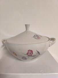 Zuppiera in porcellana bianca con coperchio.