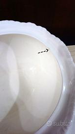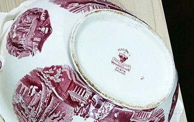 ZUPPIERA, LEGUMIERA di antica storica manifattura inglese "Mason’s" rinomata per la sua ceramica, nel famoso decoro Vista, rosso e bianco, un bordo con motivo edera completa il paesaggio del castello su tutti i lati. Epoca: XVIII e il XIX secolo, antica e rara, da esporre anche come centrotavola da collezione. Sul fondo riporta il marchio: "Mason's Vista England. Patent Ironstone China". SPECIFICHE: - Lunga cm 30, Larga cm 24; - Materiale: "Patent Ironstone China" (tipo di ceramica resistente sviluppato da Mason's); - Decoro: "Vista", famoso motivo utilizzato da Mason's caratterizzato da scene paesaggistiche e floreali. - Qualità: garantita la durabilità e la resistenza dei colori. - Origine: prodotto in Inghilterra. Condizione: eccellenti esattamente come da foto, conserva i suoi caratteristici colori intensi, perfettamente integra, presenta giusto un minuscolo puntino interno, quasi invisibile ed ingrandito in penultima foto (eventuali imperfezioni e difetti sono sempre fotografati e annotati al meglio delle mie capacità). Brevi cenni sul marchio: Mason's ha una lunga storia nella produzione di porcellane e ceramiche di alta qualità. L'azienda, originariamente nota come "Mason's Ironstone", fu fondata da Miles Mason nel 1813. Tra i decori Mason's più popolari e iconici figurano "Vista", "Mandarin" e "Regency". Consegno in zona San Paolo (ore pasti). Spedizione disponibile.