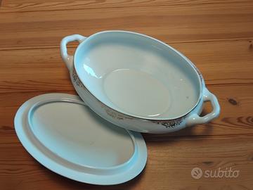Zuppiera in porcella Società Ceramica Richard, credo anni '40 - '50, larghezza 30 cm circa, con fregio dorato
