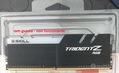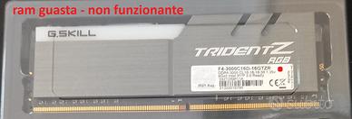 1 banco ram G.Skill Trident Z RGB DDR4-3000 (1x8 GB) .. purtroppo il banco è guasto , pertanto vendo come non funzionante , da riparare n.b. - chi avesse uno scontrino idoneo (x valore € e data) , quindi successivo alla data di produzione (Agosto 2021) ..diciamo approssimativamente da ottobre 2021 ed entro il 2022 potrebbe anche provare a chiedere riparazione/sostituzione poiche' le RAM della G.Skill hanno garanzia a vita ATTENZIONE : merce personale venduta tra privati con formula ''cosi' come vista e piaciuta'' , non accetto resi e /o reclami per eventuale spedizione il costo aggiuntivo e' di euro 8 N.B. IN CASO DI SPEDIZIONE NON MI ASSUMO RESPONSABILITA' PER EVENTUALI DANNI O MANCATA CONSEGNA O QUALSIASI ALTRO PROBLEMA DERIVANTE DAL TRASPORTO
