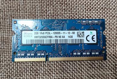 1 Stick 2GB RAM marca SK Hynix Korea DDR3 SO-DIMM 1600MHz 12800S da 204 PIN per laptop/portatile.