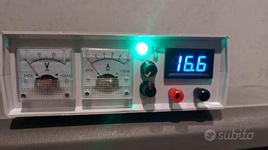 Vendo alimentatore regolabile switching NUOVO autocostruito, con voltaggio regolabile da 1,2 a 24V e corrente regolabile da 0 a 6A con picchi di 7. Munito di voltmetro e amperometro analogico. Dotato di cavo di rete e cavo per utilizzo con pinze. SPEDIZIONE GRATUITA E IMMEDIATA!!!