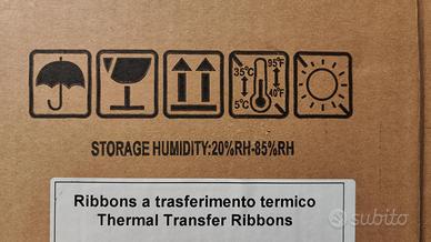Scatola da 10 pz Ribbon CERA mm 64mm×74mt nero, INK OUT, anima da 12mm, inchiostrazione esterna per carta trasferimento termico vellum e patinata - vendita per acquisto errato