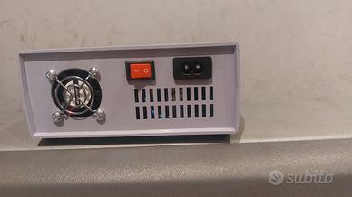 Vendo alimentatore regolabile switching NUOVO autocostruito, con voltaggio regolabile da 1,2 a 24V e corrente regolabile da 0 a 5A con picchi di 6A..! Munito di ampio display che visualizza : voltmetro / amperometro e wattommetro digitale. Dotato una ventola di sicurezza con griglia di protezione, cavo di rete e cavo per utilizzo con pinze. SPEDIZIONE GRATUITA E IMMEDIATA!!!