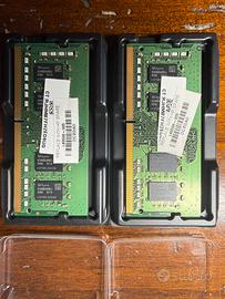 Vendo coppia di memorie RAM per notebook (SO-DIMM) da 8GB ciascuna, per un totale di 16GB. I moduli sono di marca SK hynix, leader mondiale nel settore, e sono stati estratti da un laptop nuovo per passaggio a taglio superiore. Sono testati e perfettamente funzionanti. -Specifiche Tecniche -Capacità:16GB (Kit 2x8GB) -Tipo: DDR4 SO-DIMM (260-pin) -Velocità: 3200 MHz (PC4-25600 / PC4-3200AA) -Latenza:CL22 -Tensione: 1.2V (Basso consumo) -Codice Prodotto: HMA81GS6DJR8N-XN -Compatibilità Extra:Codice HP Spare L46598-005 (ideali per upgrade certificati su sistemi HP). Ottime per velocizzare il computer, migliorare il multitasking o per il gaming. Compatibili con la stragrande maggioranza dei laptop moderni. #Ram #16gb #ddr4 #sodimm