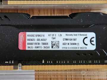 Vendo coppia di moduli da 8Gb l'uno, in Kit per un totale di 16 Gb. DDR4 2666 Codice prodotto Kingston HyperX HX426C15FBK2/16 Usate e funzionanti. Solo consegna a mano zona Ravenna.