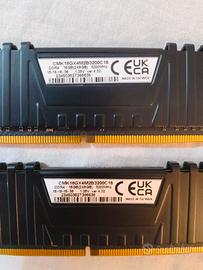 Kit 16 gb ( 2x8gb ) Ram Ddr4 Corsair vengeance lpx 3200 MHz cl 16 Perfettamente funzionanti come nuove perfette per PC da gaming Intel o AMD con schede video sia Nvidia RTX o GTX che amd radeon RX Testate con il software occt prima della vendita come visibile in foto Qualsiasi domanda a disposizione Spedizione veloce e imballaggio sicuro