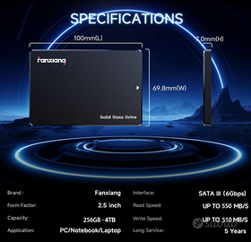 Alta compatibilità : 1TB SSD SATA interno è compatibile con Windows, Linux e Mac OS, nonché con laptop, desktop e PC. fanxiang SSD 2.5" 1TB ha un'interfaccia SATA III 6GB/S integrata ed è retrocompatibile con le interfacce SATA II e SATA. L'SSD 1TB ha un'eccellente dissipazione del calore ed è resistente alle cadute e silenzioso, offrendo un'esperienza eccezionale