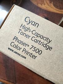 vendo 2 cartucce toner ad alta capacità per la stampante laser a colori Xerox Phaser 7500. Compatibilità: Progettati specificamente per la stampante Xerox Phaser 7500. Contenuto: Cartucce per toner nero (Black) e ciano (Cyan). Tecnologia: Utilizzano tecnologia laser a colori per una stampa di alta qualità. Capacità: Alta capacità, ideale per ambienti di lavoro intensi con stampe a colori brillanti. Black High-Capacity Toner Cartridge: Cartuccia di toner nero ad alta capacità Cyan High-Capacity Toner Cartridge: Cartuccia di toner ciano ad alta capacità Phaser 7500 Color Printer: Stampante a colori Phaser 7500