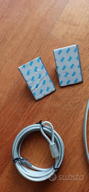 2 cavi acciaio + 2 piastre adesive 3M antifurto PC