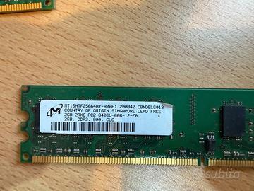Un banco da 2 GB DDR 800 2 Micron, tipo PC2-6400. Sigla MT16HTF25664AY-800E1. Ritiro a mano Roma Aurelia o Palmiro Togliatti.