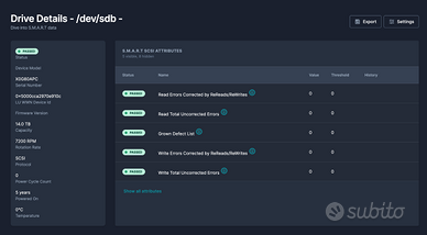 Vendo causa dismissione del sistema e passaggio a dischi più grandi sul mio server, Due HD WD DC HC530 ULTRASTA Data Center da 14 TB. Disco serie Enterprise SAS. Disco con il 100% della salute allego screen e report smart. Disponibili anche altri dischi identici sia per salute che per modello. Ritiro a Clusone consigliato e preferito oppure spedizione in tutta Italia