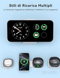 - *Dettagli:* Caricatore wireless multifunzione, ideale per casa e ufficio, protegge i dispositivi e offre una ricarica veloce e sicura
