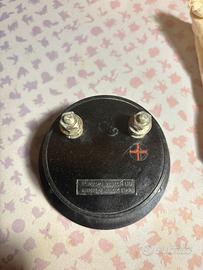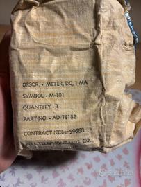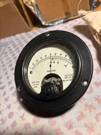 1. Milliamperometro Weston (Modello S26-1-510) • Produttore: Sangamo Weston Ltd. (Enfield, Middx, Inghilterra). • Caratteristiche: Scala graduata centrale (zero al centro) da -0.8 a +0.8 mA. • Dettagli Tecnici: Fondo scala 1 \text{ mA}, resistenza interna 25 \text{ Ohm}. Marcato "NFe" (per pannelli non ferrosi). • Condizioni: Ottime condizioni estetiche, completo della sua confezione originale in tela cerata dell'epoca (Bell Telephone Mfg. Co.). Presenta ancora il sigillo rosso di taratura. 2. Milliamperometro C.G.S. Monza (Modello HW120) • Produttore: C.G.S. Istrumenti di Misura (Italia). • Caratteristiche: Grande quadrante nero con scala bianca ad alta leggibilità, graduata da 0 a 300 (scala 1 \text{ mA}). • Dettagli Tecnici: Montaggio a pannello tramite alette metalliche posteriori. Design robusto tipico delle strumentazioni industriali italiane della metà del secolo scorso. • Condizioni: Molto buone, conservato nella sua scatola di cartone protettiva.