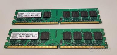 Vendo 2 moduli "TRASCEND" memoria Ram - DDR2 2Gb - 667 DIMM CL5 Prezzo Euro 10 per entrambi