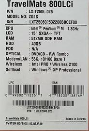 1. ACER Travelmate 800LCi con manuali, software, cavo di alimentazione e scatola originali.