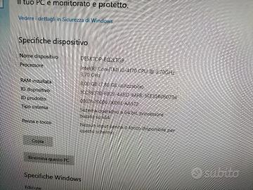 2 PC computer desktop I3-4170 3,70Ghz,entrambi 8Gb ram,uno 320Gb e l'altro 500Gb di hard disk, Windows 10 Pro installato.Con tastiera e mouse, qualche segno sui case