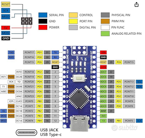 ARDUINO NANO V3 100% COMPATIBILE 2 PEZZI SPEDIZIONE GRATUITA.
