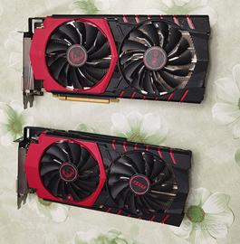 Vendo 2 schede video Msi R9 390 gaming 8GB di memoria dedicata con 2 ventole di raffreddamento e doppia alimentazione, una 6 pin e 8 pin come si vede in foto.