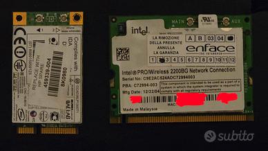 coppia di schede WiFi Mini-PCI compatibili con notebook datati (tipo Dell, Asus Eee PC) funzionanti. Valide per upgrade o riparazioni su vecchi laptop con slot Mini-PCI.