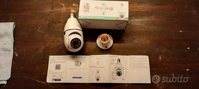 vendo 2 telecamere da sicurezza wireless per interni/esterni con visione notturna montaggio a parete o su lampadario, audio bidirezionale controllo tramite app Wi-Fi.