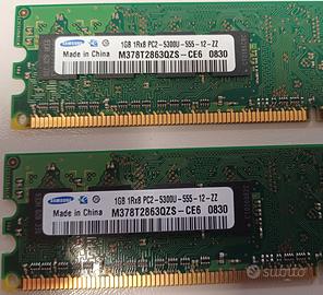 Vendo 2 memorie RAM 1GB marca SAMSUNG , caratteristiche complete etichetta in foto, a solo € 4, vero affare!