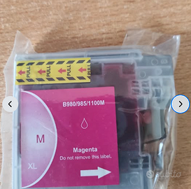 9 cartucce Nero XL B980/985/1100BK 4 cartucce Magenta B980/985/1100M 4 cartucce Ciano B980/985/1100C 3 cartucce Giallo B980/985/1100Y Tutte le cartucce sono nuove e sigillate. 20 cartucce al prezzo totale di 15,00 €