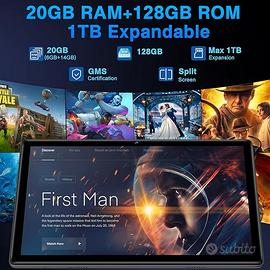 Android 14, 20GB RAM+128GB ROM(TF 2TB), Octa Core, 5G+2.4G Wi-Fi 6, Bluetooth 5.0, 6000mAh, 8MP+5MP, Cast, 1280*800, Widevine L1, GMS Tablet PC con Tastiera e Mouse, Nero