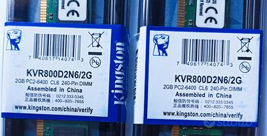 Kingston 2GB 800 MHz PC2-6400U DIMM DDR2 KVR800D2N6/2G Memoria Ram per PC Desktop 2 Pezzi da 2 Gb (totale 4 Gb) Nuove, nel loro astuccio. Descrizione articolo: • Memoria RAM DDR2 per PC Desktop • Chip originali, doppia faccia • bassa densità a 240 pin • Supporto Dual Channel • 1,8 V, CL6 • Qualità premium • Senza buffer, non ECC, non registrata • Completamente testata Contenuto della confezione: 2 Pezzi x 2 GB 800 MHz Memoria Ram per PC Desktop