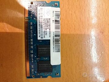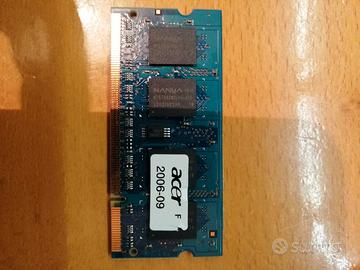 ATTENZIONE: Non sono stati effettuati dei test e non assicuro il suo funzionamento. La ram è ferma da molto tempo. Accetto offerte. Modulo Samsung 512MB (DDR2 Laptop) Capacità: 512 MB Tecnologia: DDR2 SODIMM (per PC portatili) Velocità: PC2-4200S (533 MHz) Modello: M470T6554CZ3-CD5 Note: Componente originale Samsung, ottima come ricambio per sistemi vintage. Modulo Nanya 512MB (DDR2 Laptop) Capacità: 512 MB Tecnologia: DDR2 SODIMM (per PC portatili) Velocità: PC2-4200S (533 MHz) Modello: NT512T64UH8A1FN-37B Note: Modulo rimosso da notebook Acer, perfettamente compatibile con standard DDR2.