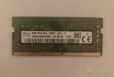 Vendo due moduli RAM da 8GB ciascuno, marca SK hynix, modello HMA81GS6AFR8N, DDR4 2400MHz PC4 SODIMM, perfetti per notebook. Entrambi funzionanti e testati, ideali per upgrade portatili compatibili. Provenienza: notebook, condizioni eccellenti.