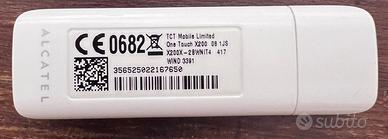 Vendo modem USB Alcatel One Touch X200 (codice: 081S WIN 3391) marchiato Wind, con strass decorativi tipo Swarovski applicati. Può essere utilizzato con SIM dati 3G/HSPA.