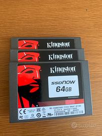 3 SSD Kingston da 64 Gb formattati ma rischio di fine vita, pre-fail, quindi per parti di ricambio.