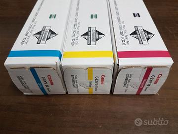 In blocco cedo tre toner nuovi giallo, magenta e ciano, originali Canon, con bollino di autenticità, mai aperta nemmeno la scatola, sempre conservati in stanza a 20 gradi. Modello C-exv34 adatti a vari modelli di multifunzioni Canon imagerunner come ad esempio c2020 c2025 c2030 c2220 c2230 c2225. Prezzo non trattabile visto che è perfino più basso di quello dei toner compatibili mentre questi sono originali. Contatti solo tramite messaggistica di subito, no telefono/whatsapp