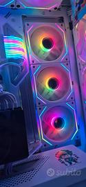Vendo per cambio pc queste 3 ventole argb bianche da 120mm reverse blade (flusso d'aria al contrario, guardare foto del pc per capire) collegabili tra loro come in foto.